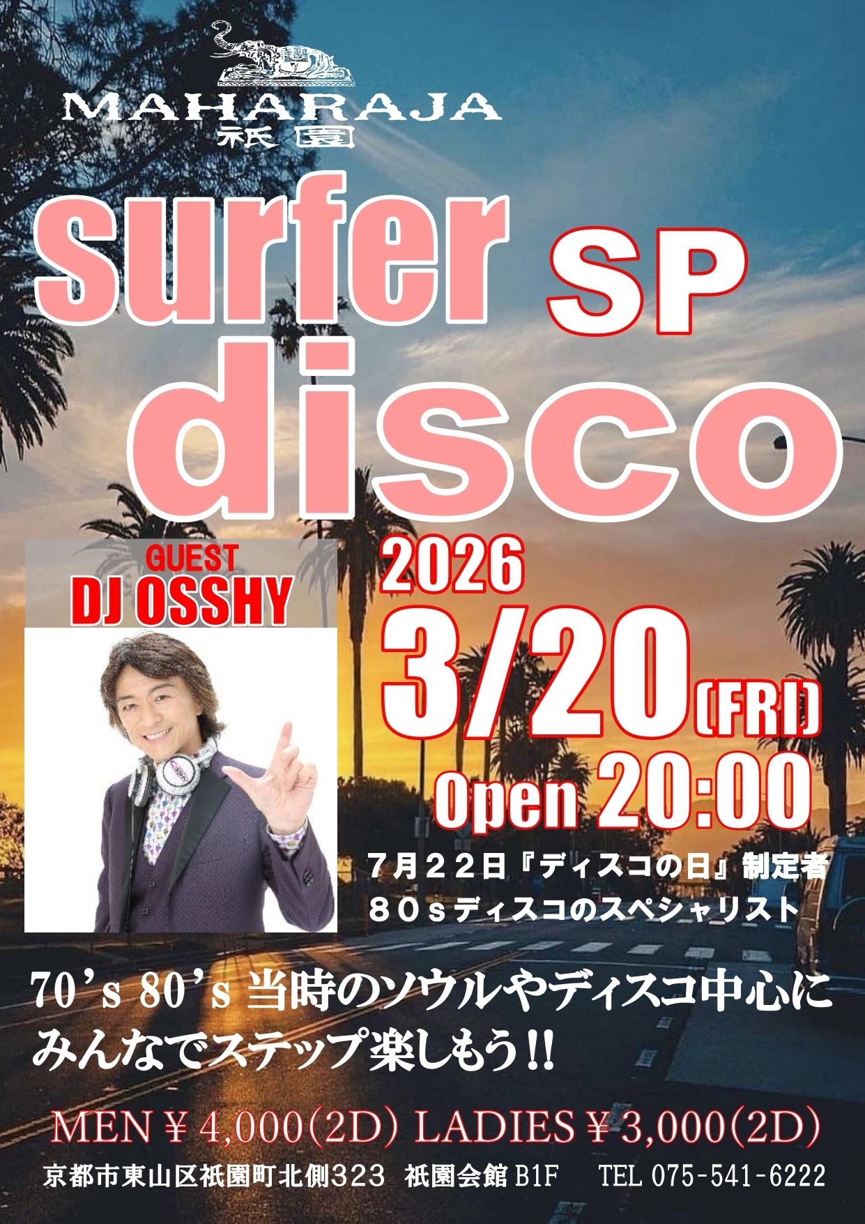 3月20日(金・祝日)に開催される京都祇園マハラジャ surfer disco SPでの、